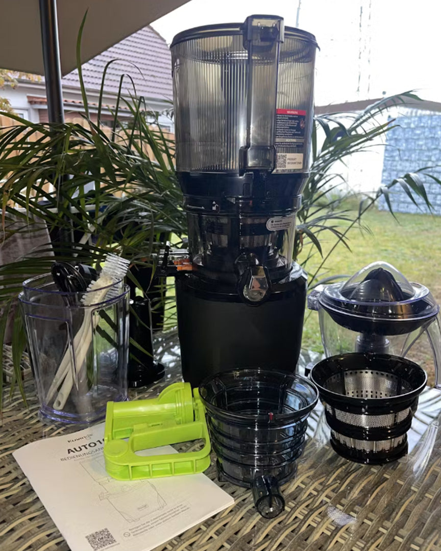 Best cold press juicer for juice quality. It has a wide two-way feed chute that makes preparation easy and quick.
