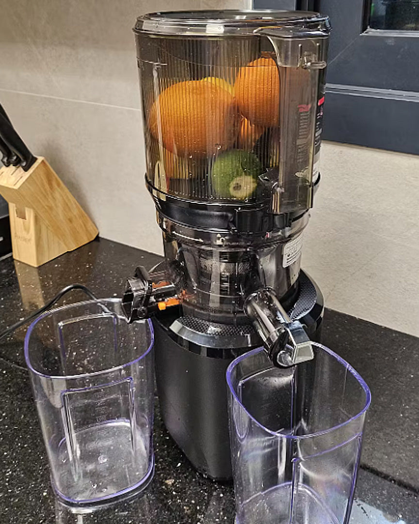 Best cold press juicer for juice quality. It has a wide two-way feed chute that makes preparation easy and quick.