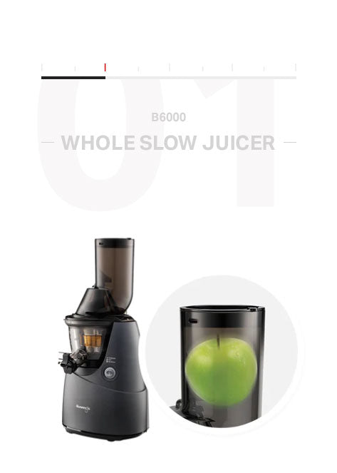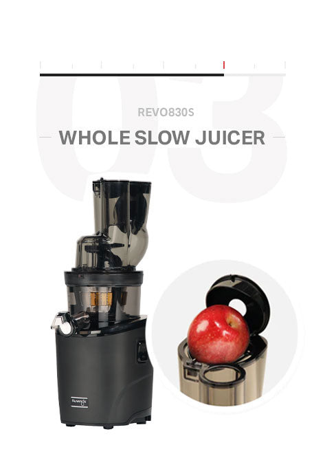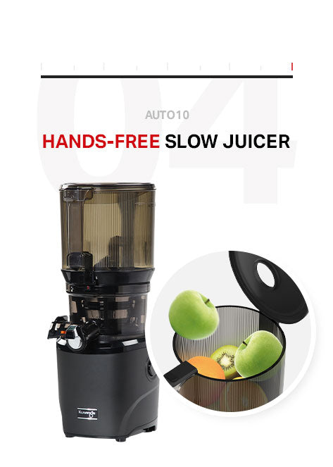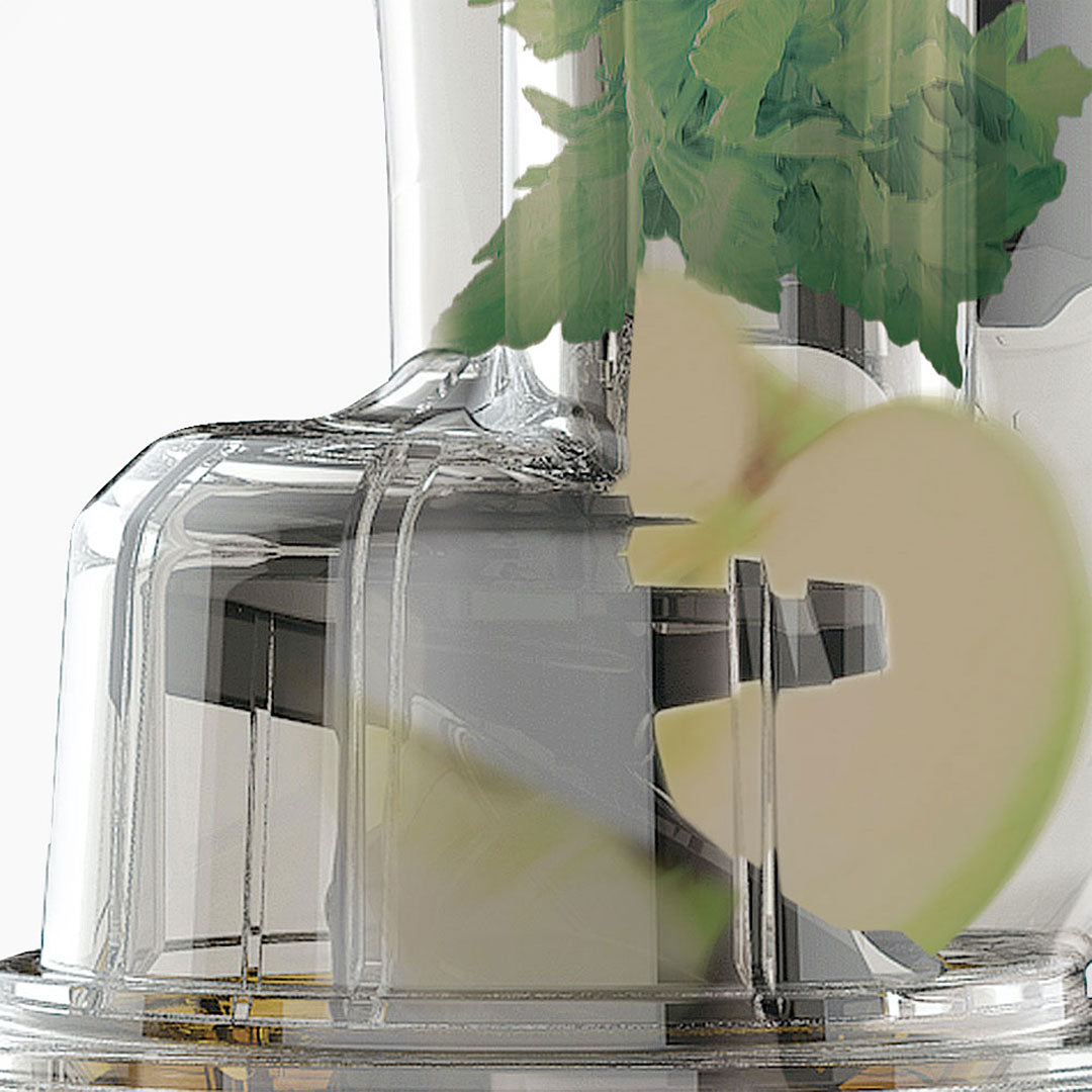 So you've already learned a little bit about cold pressing, which involves pressing (or squeezing) fruits and vegetables to extract the juice. The auger inside the machine rotates at about 52 rpm (repetitions per minute) which, ironically, is about the same speed as we chew our food. This is what is called a Slow Juicer.