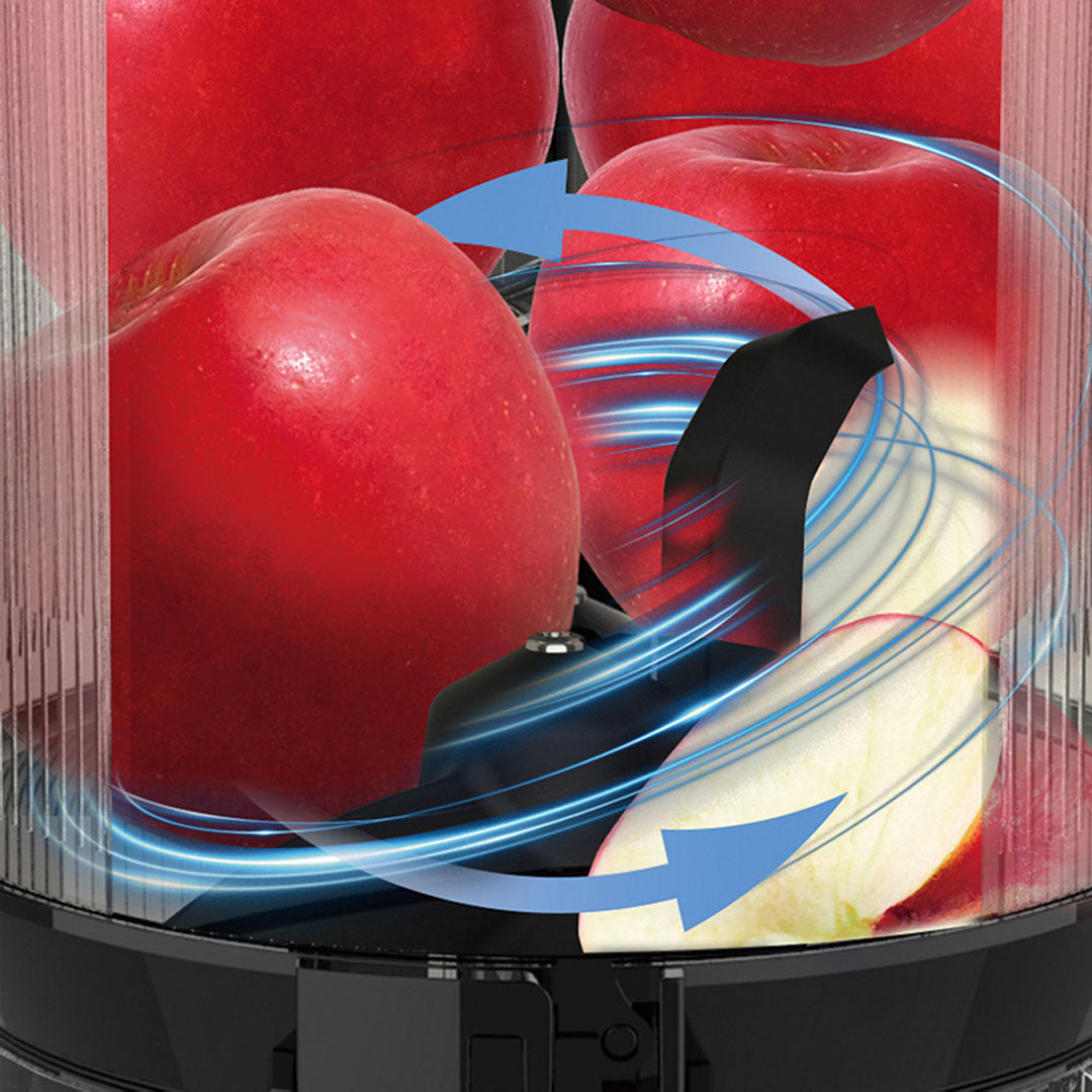 When you put fruit and veg in a juicer machine with rapidly spinning blades, those blades act like a machete - tearing up the fruit and veg and shredding it so you get the juice. As the blades rotate in the bowl, the juice is separated into the press bowl and the pulp ends up as waste (or compost) in the pulp bowl.