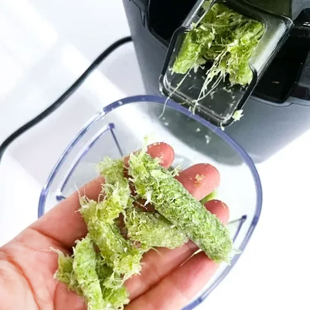 However, when you drink juice, the insoluble fiber has already been removed. This is the point where many people despair. They know they need fiber, and when they see all that "pulp," aka insoluble fiber, falling into their pulp bin, they lose a bit of their mind. They worry they're missing out. And a lot of people try to use this porridge for baking and all sorts of things, thinking it's the holy water of juicing.