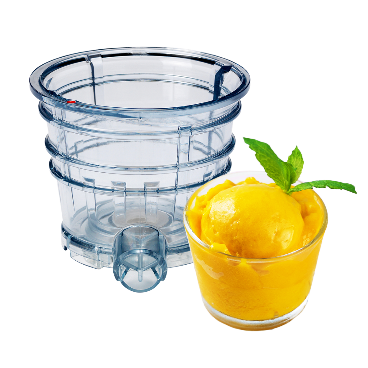 The product can be widely used for making juice as well as ice cream and smoothies. Replace the juice strainer with an blank strainer for ice cream, and with a smoothie strainer for soft smoothies.