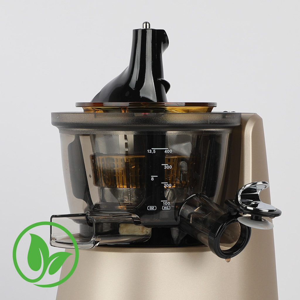 The container is made of Tritan that is free of environmental hormones (Bisphenol A), and the juicing mesh and screw are made of safe and durable ULTEM.